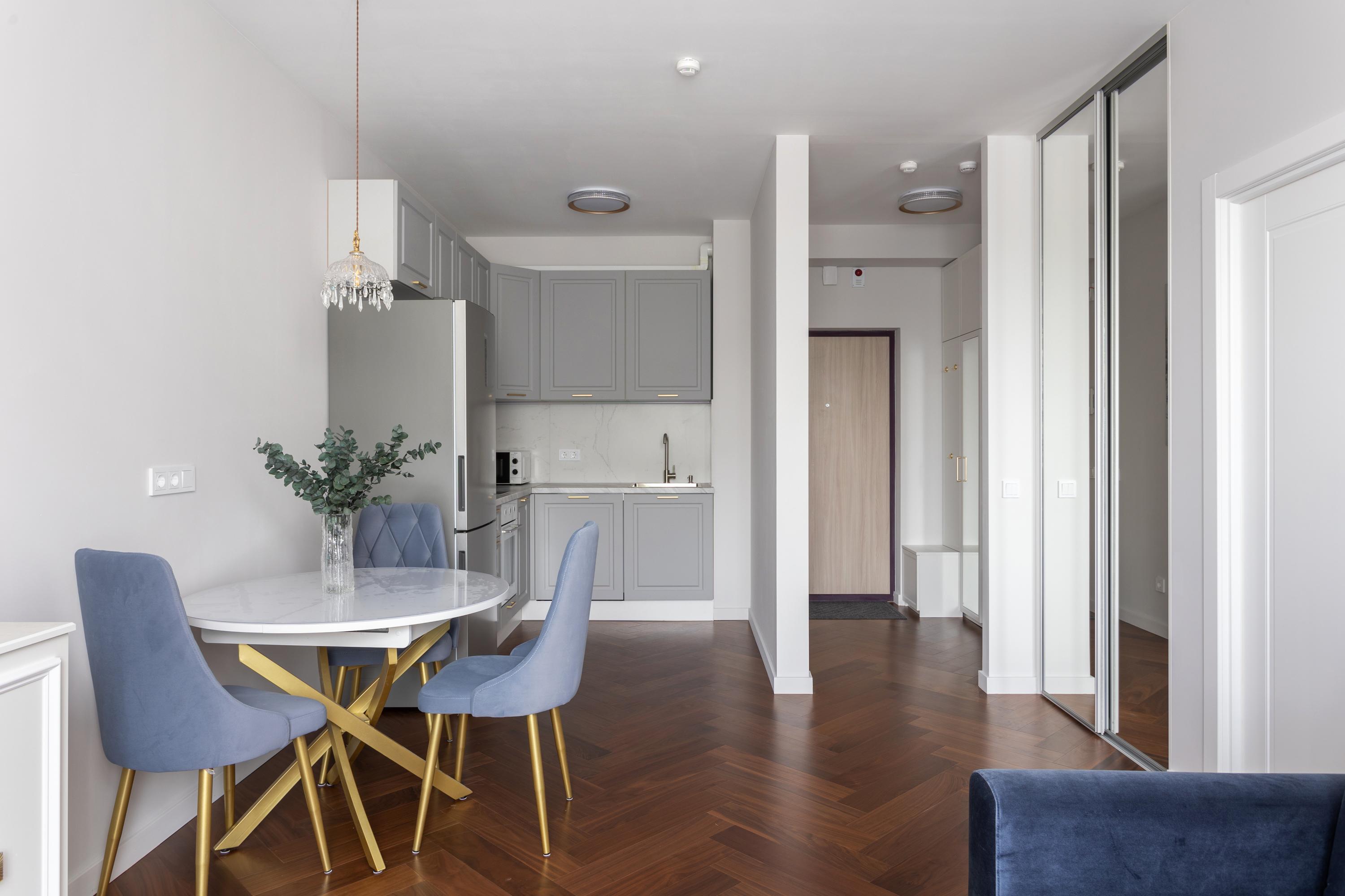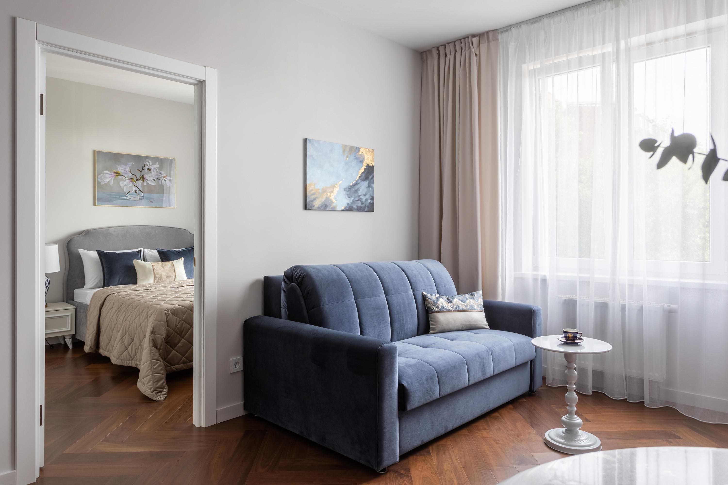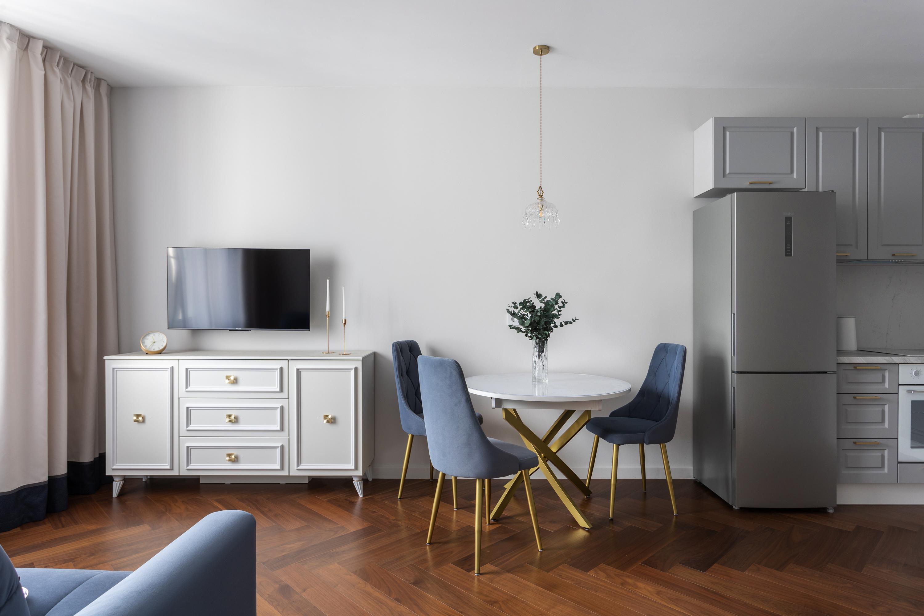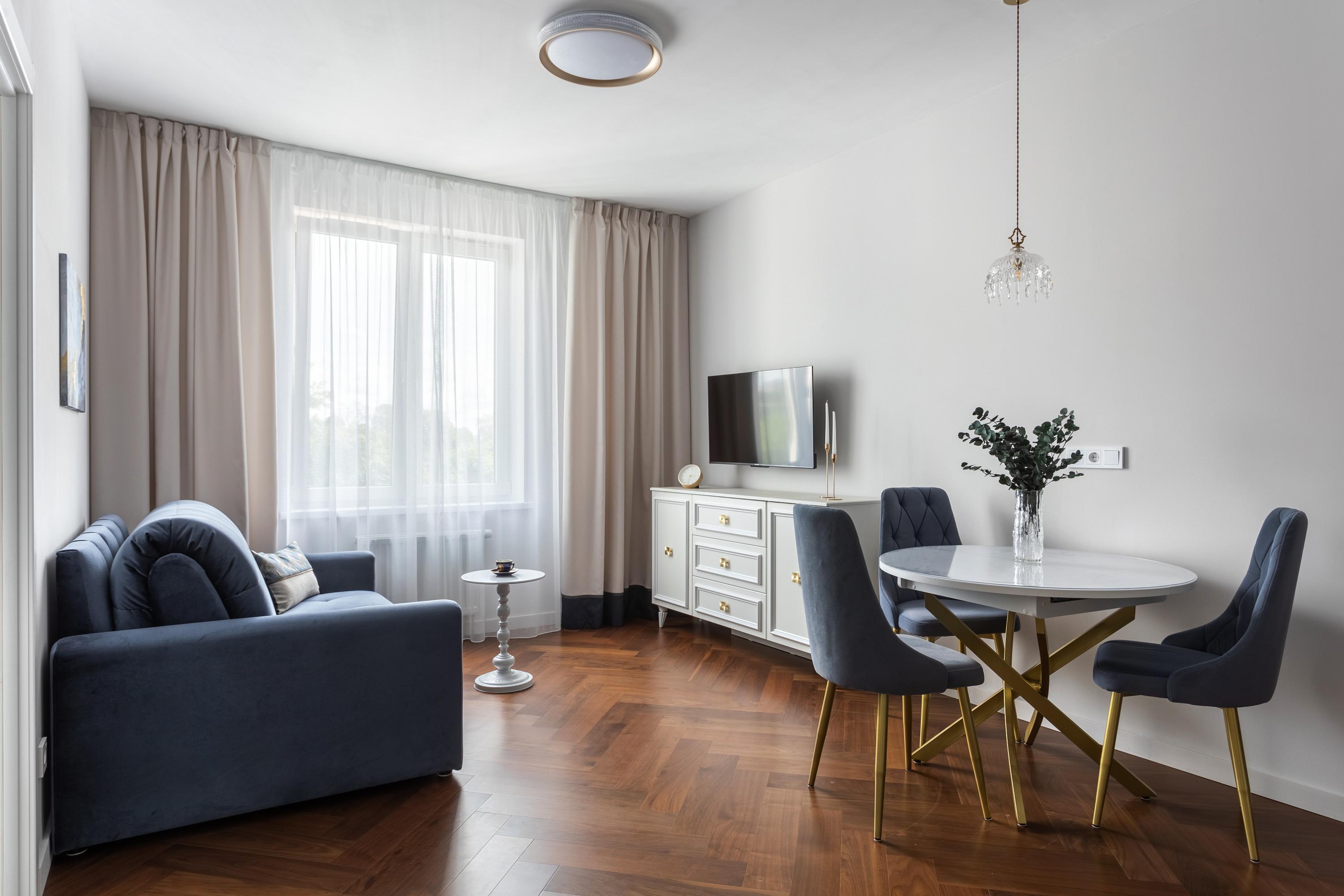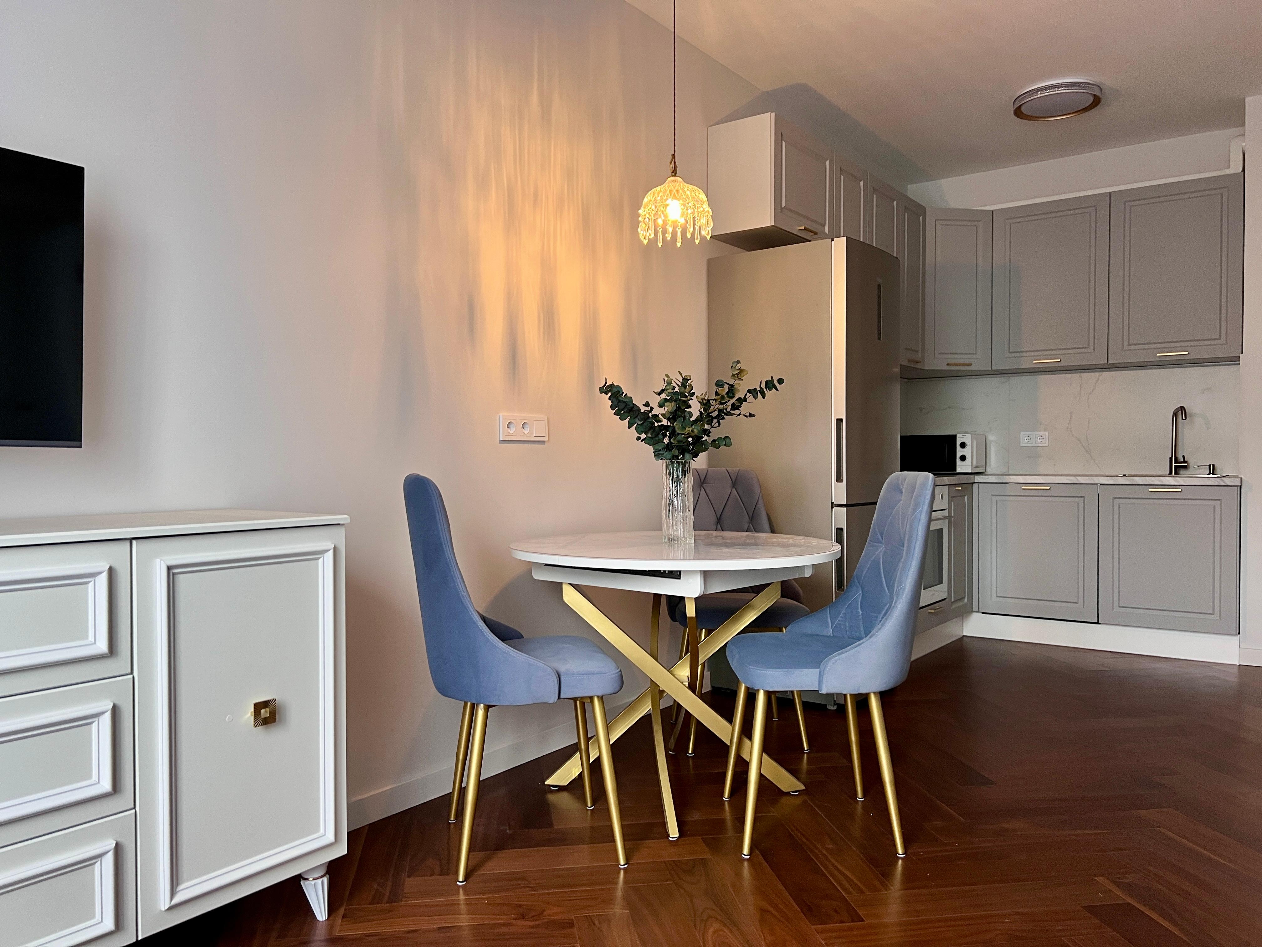 Квартира расположена в новом современном жилом комплексе, при этом в исторической части города В пешей доступности - Ботанический сад Петра Великого - одно из ключевых исторических мест Санкт-Петербурга. В пяти минутах ходьбы - станция метро Выборгская. Через дорогу от жилого комплекса - уютный Сампсониевский сад, в котором находится один из первых храмов города - собор преподобного Сампсония Странноприимца. Здесь же установлен памятник Первостроителям Петербурга, а также памятник Петру I. Рядом с квартирой множество образовательных и медицинских учреждений: * Военный институт физической культуры (ВИФК) - 15 минут пешком * Военно-медицинская академия им. С.М. Кирова (ВМА) - 15 минут пешком * Санкт-Петербургский государственный педиатрический медицинский институт (СПбГПМУ) - 20 минут пешком * Детский реабилитационно-восстановительный центр (ДРВЦ) им. Г.А. Альбрехта - 20 минут пешком 👌Квартира полностью соответствует фотографиям. Дизайн выполнен в глубоких кобальтово-синих цветах, со стильными элементами и деталями. ⚡ Идеально подходит для посуточного проживания 2-4 человек. В квартире есть всё необходимое для комфортного проживания: ✅ В спальне - удобная двуспальная кровать с ортопедическим матрасом; вместительный шкаф для одежды, просторная гардеробная со стиральной машиной. ✅ В гостиной - роскошный диван, который раскладывается в полноценную двуспальную кровать, телевизор со SMART-TV, обеденная и кухонная зона. ✅ Кухонная зона оборудована всем необходимым: электрическая плита с духовкой, холодильник, посудомоечная машина, электрический чайник, микроволновка, вся необходимая посуда и кухонные принадлежности. ✅ В ванной комнате - ванна, чистые полотенца, мыло, шампунь, гель для душа. ✅ Гостей ждёт всегда свежее постельное бельё, есть фен, утюг, гладильная доска, сушилка. ✅ Бесплатный WI-FI ❗До заезда необходимо подписать договор-оферту и предоставить фото лицевой страницы паспорта, а также разворота с печатью о регистрации по месту жительства.