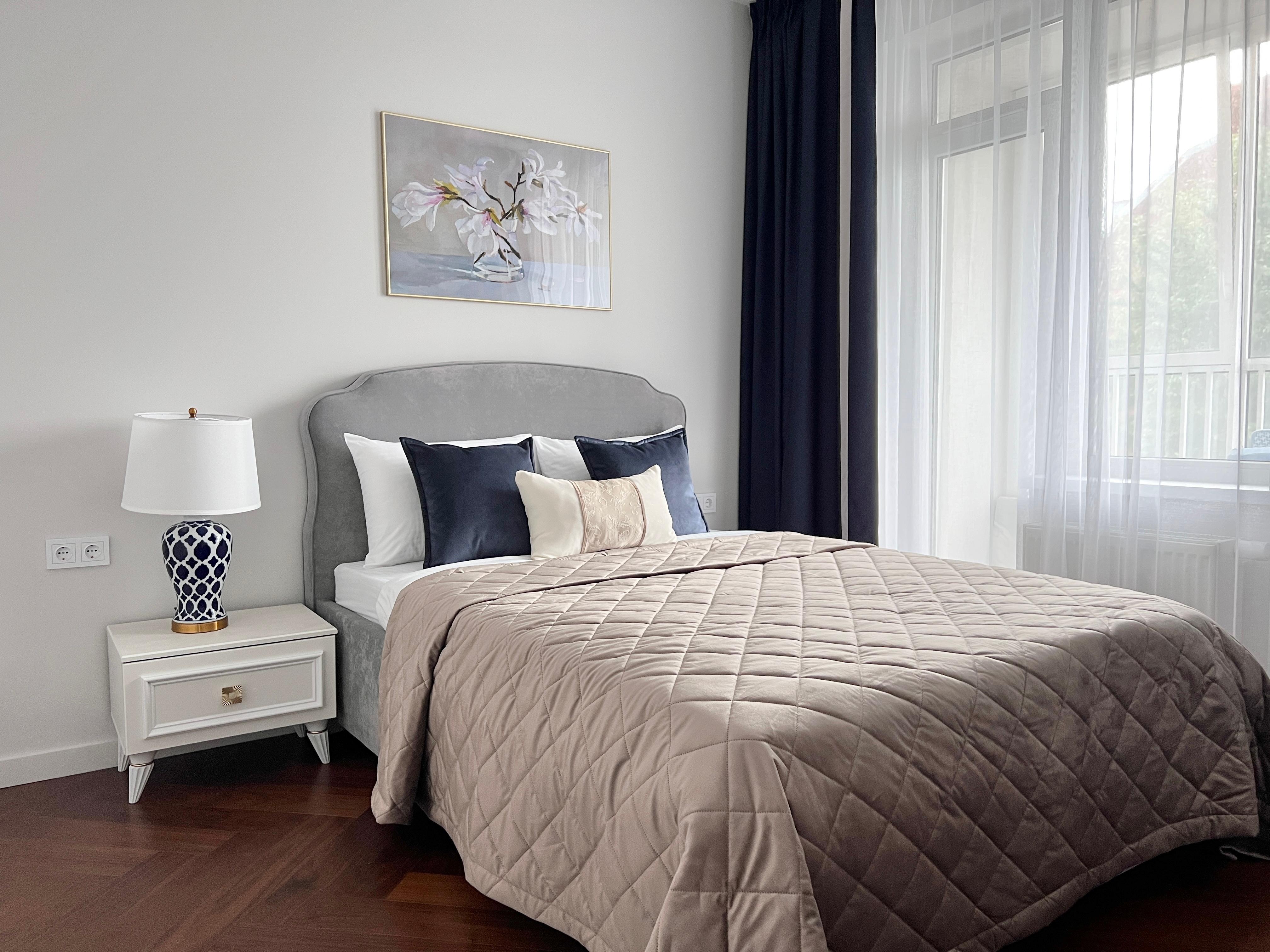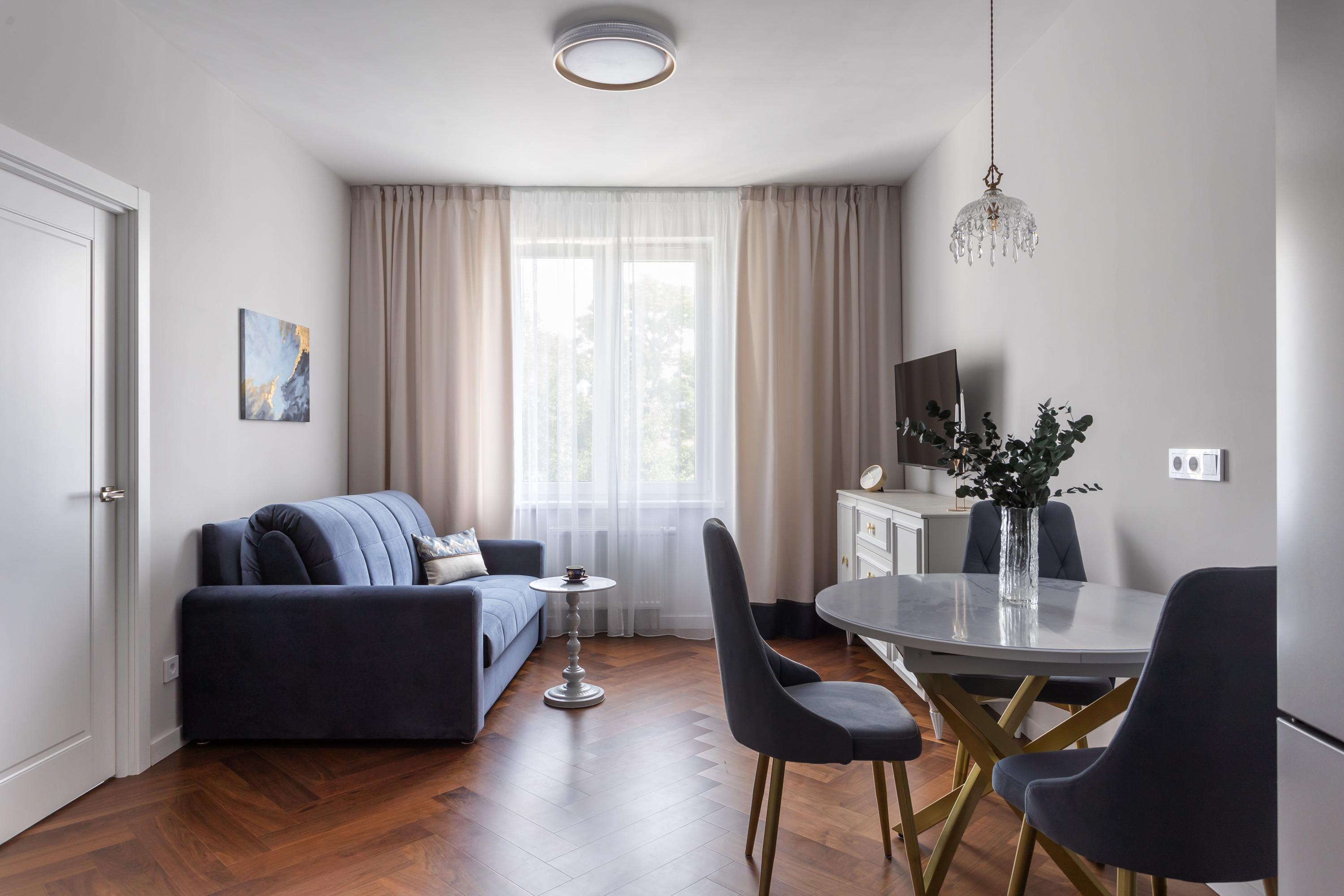 Квартира расположена в новом современном жилом комплексе, при этом в исторической части города В пешей доступности - Ботанический сад Петра Великого - одно из ключевых исторических мест Санкт-Петербурга. В пяти минутах ходьбы - станция метро Выборгская. Через дорогу от жилого комплекса - уютный Сампсониевский сад, в котором находится один из первых храмов города - собор преподобного Сампсония Странноприимца. Здесь же установлен памятник Первостроителям Петербурга, а также памятник Петру I. Рядом с квартирой множество образовательных и медицинских учреждений: * Военный институт физической культуры (ВИФК) - 15 минут пешком * Военно-медицинская академия им. С.М. Кирова (ВМА) - 15 минут пешком * Санкт-Петербургский государственный педиатрический медицинский институт (СПбГПМУ) - 20 минут пешком * Детский реабилитационно-восстановительный центр (ДРВЦ) им. Г.А. Альбрехта - 20 минут пешком 👌Квартира полностью соответствует фотографиям. Дизайн выполнен в глубоких кобальтово-синих цветах, со стильными элементами и деталями. ⚡ Идеально подходит для посуточного проживания 2-4 человек. В квартире есть всё необходимое для комфортного проживания: ✅ В спальне - удобная двуспальная кровать с ортопедическим матрасом; вместительный шкаф для одежды, просторная гардеробная со стиральной машиной. ✅ В гостиной - роскошный диван, который раскладывается в полноценную двуспальную кровать, телевизор со SMART-TV, обеденная и кухонная зона. ✅ Кухонная зона оборудована всем необходимым: электрическая плита с духовкой, холодильник, посудомоечная машина, электрический чайник, микроволновка, вся необходимая посуда и кухонные принадлежности. ✅ В ванной комнате - ванна, чистые полотенца, мыло, шампунь, гель для душа. ✅ Гостей ждёт всегда свежее постельное бельё, есть фен, утюг, гладильная доска, сушилка. ✅ Бесплатный WI-FI ❗До заезда необходимо подписать договор-оферту и предоставить фото лицевой страницы паспорта, а также разворота с печатью о регистрации по месту жительства.